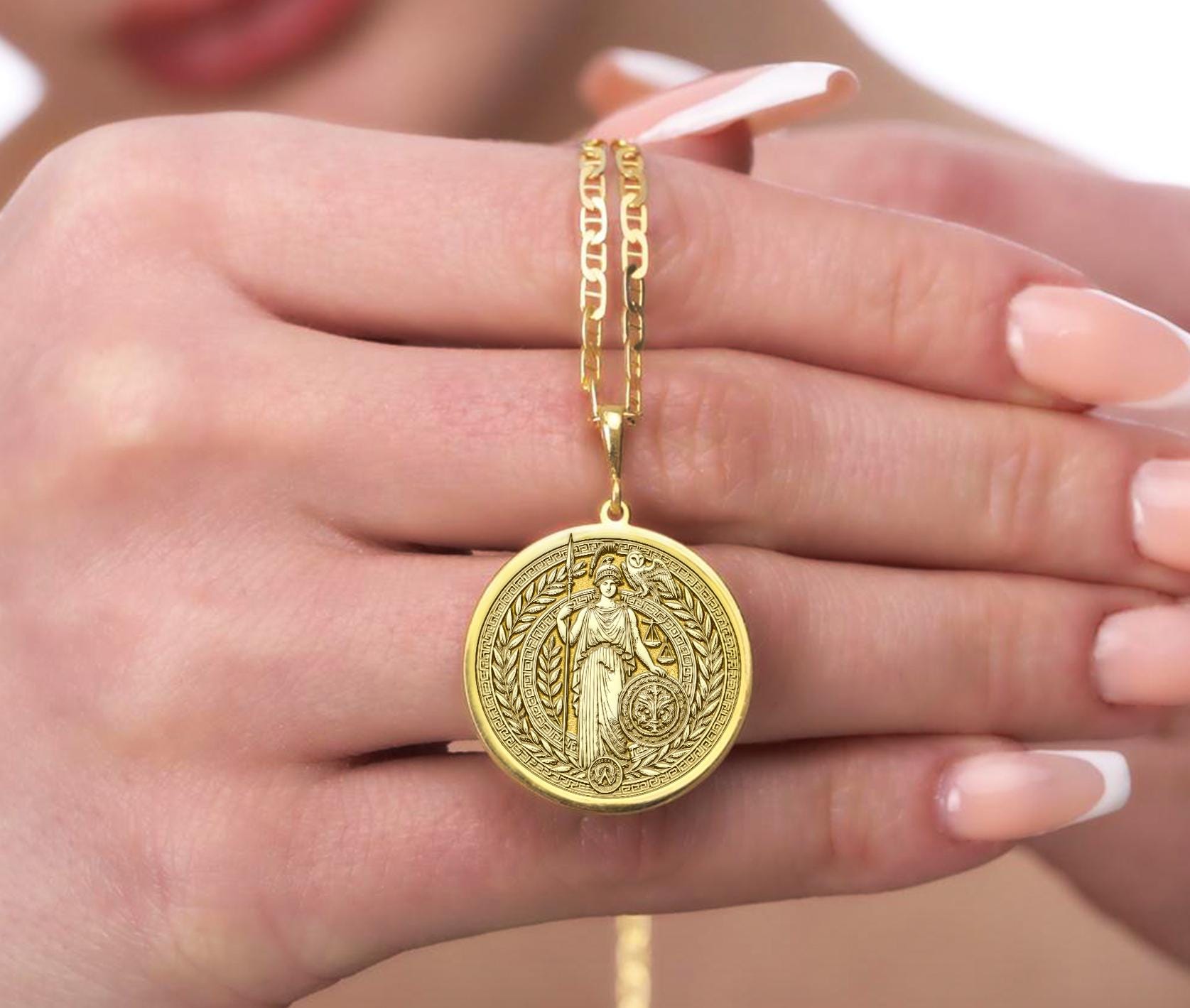 14k Solid Gold Athena Necklace Gold Plated, Wisdom & Protection Pendant (Sterling Silver)