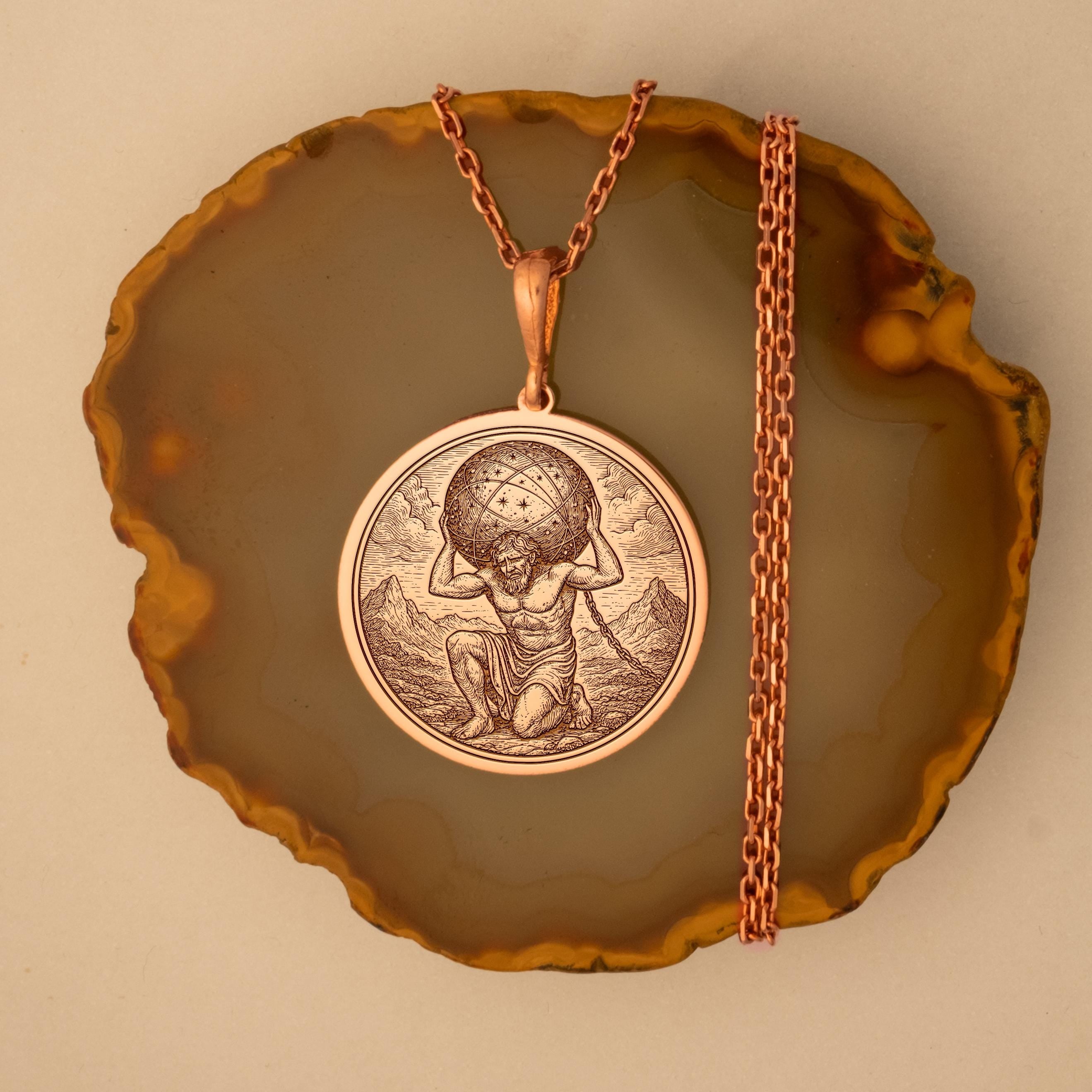 14k Solid Gold Atlas Necklace – Titan Holding the World Pendant | Greek Mythology Strength Jewelry Gift
