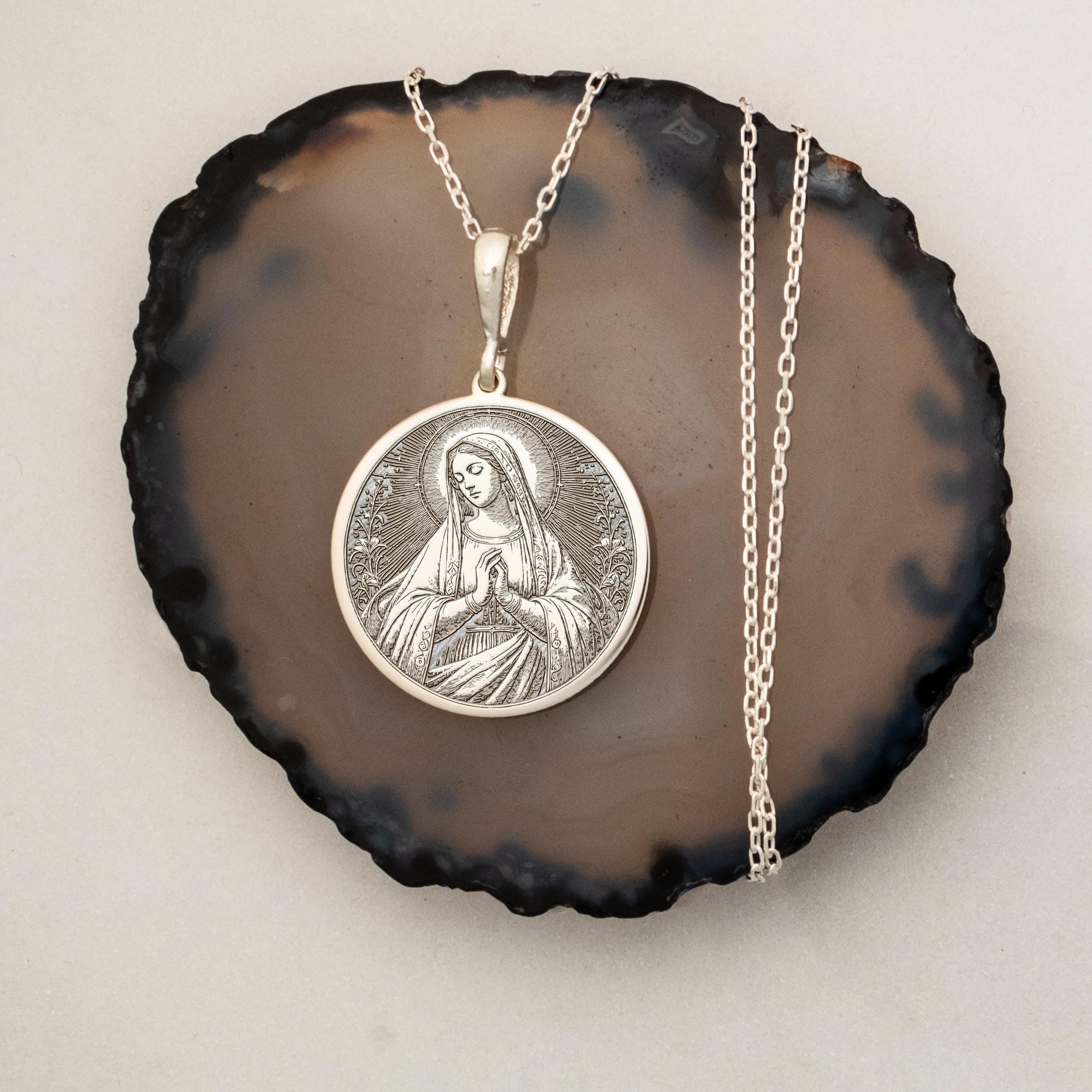Discover the serene beauty and spiritual significance of this Ave Maria necklace, a cherished symbol of faith and divine protection. Crafted with devotion, this Virgin Mary pendant embodies the essence of Marian jewelry, offering a tangible connection to prayer and grace. Whether worn as a daily talisman or a meaningful gift, it carries blessings and comfort close to the heart.