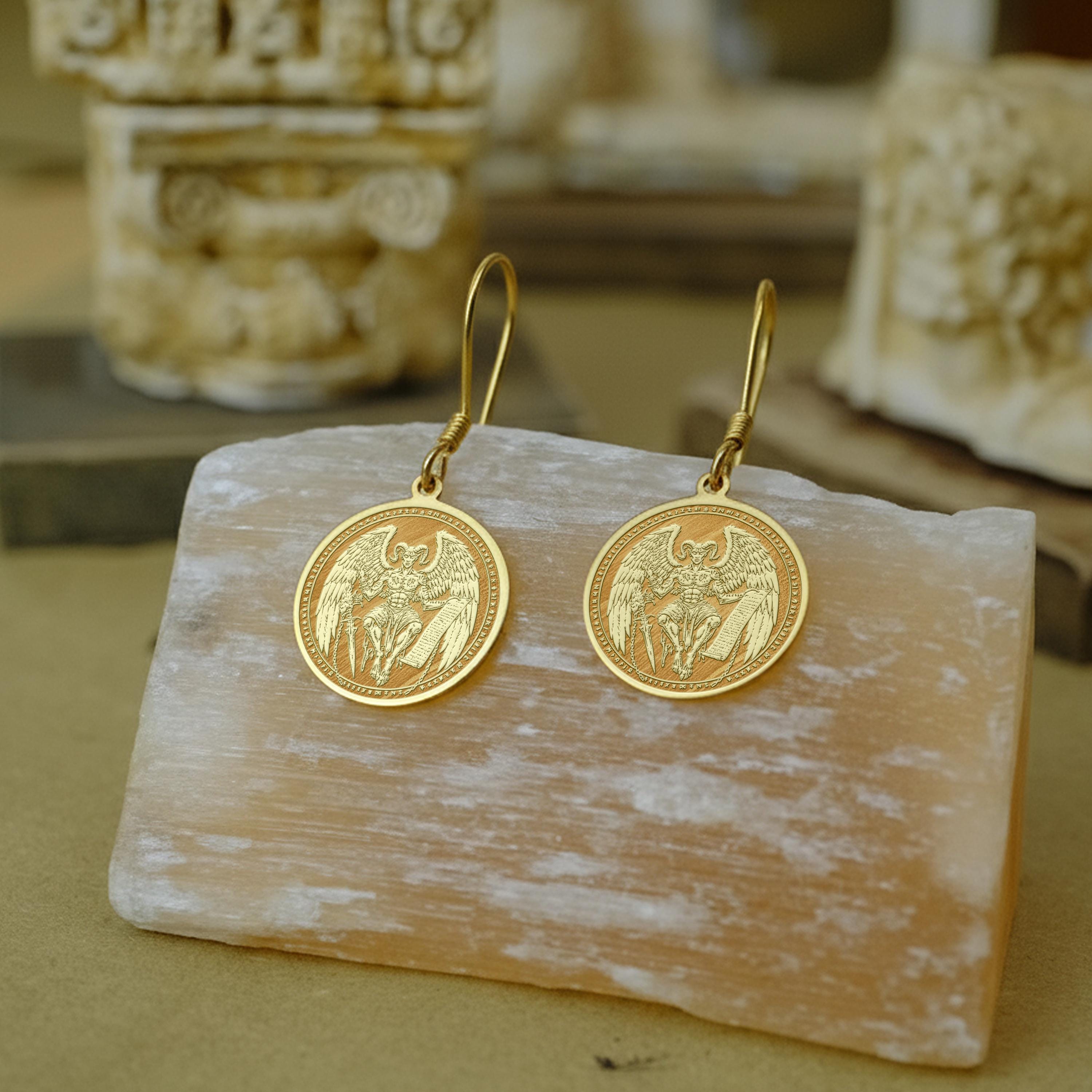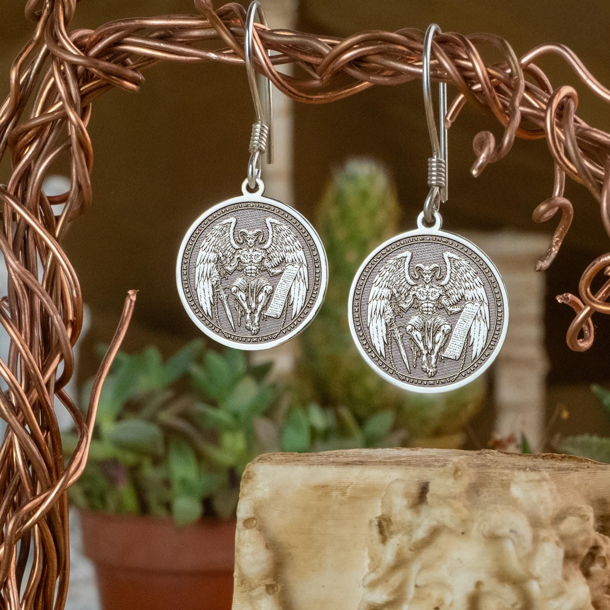 14k Solid Gold Azazel Earrings – Gold Plated 925 Silver Dark Mythology Jewelry, Fallen Spirit Symbol Earrings, Handmade Gothic Gift for Her