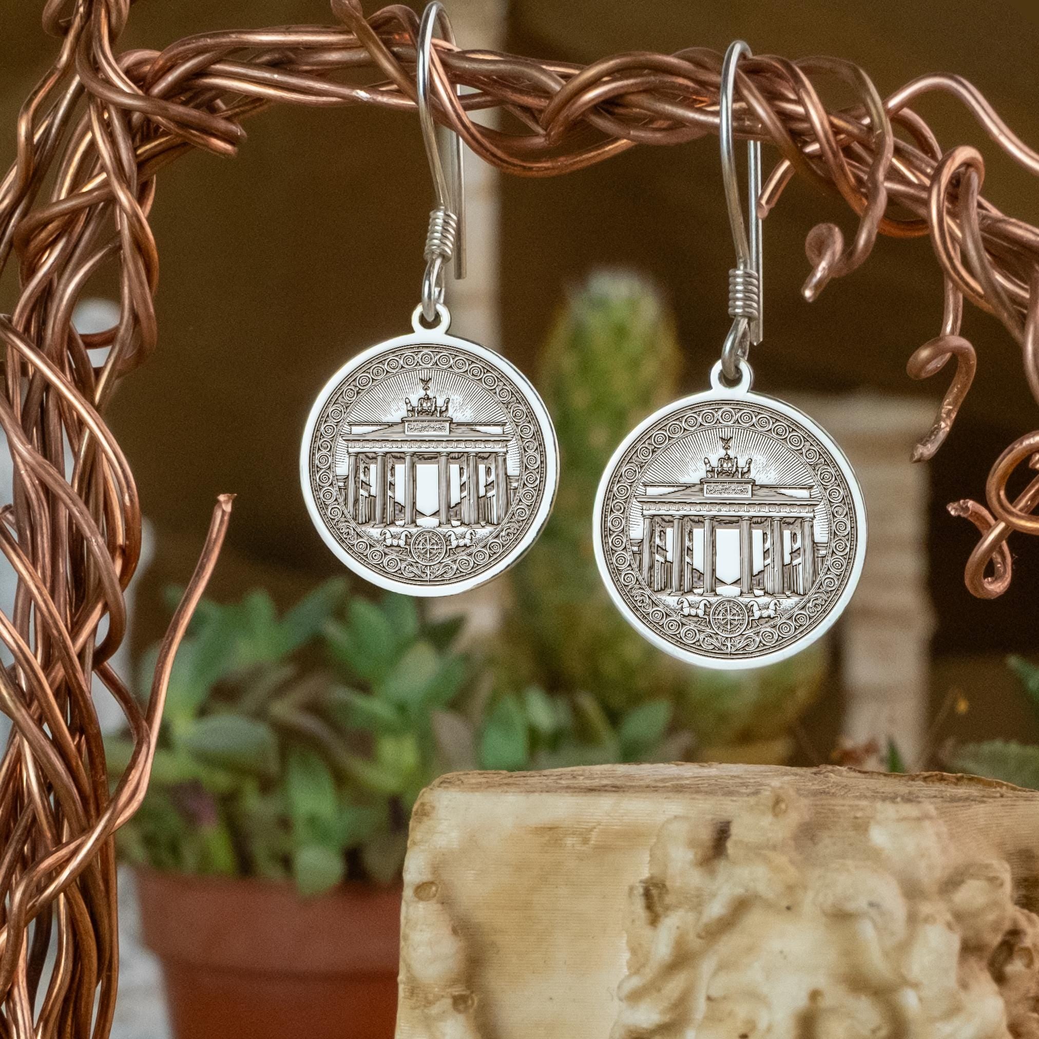Discover the elegance of Berlin with these gold plated sterling silver earrings, inspired by the iconic Brandenburg Gate. Designed as a unique heritage gift, they beautifully capture meaningful symbolism and celebrate travel memories. Whether you're seeking a special Berlin landmark gift or custom date earrings, this minimalist design offers a timeless keepsake.